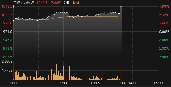 上证报中国证券网讯据Choice数据,7月22日,焦煤期货主力合约盘中涨停,报1048.5元/吨。